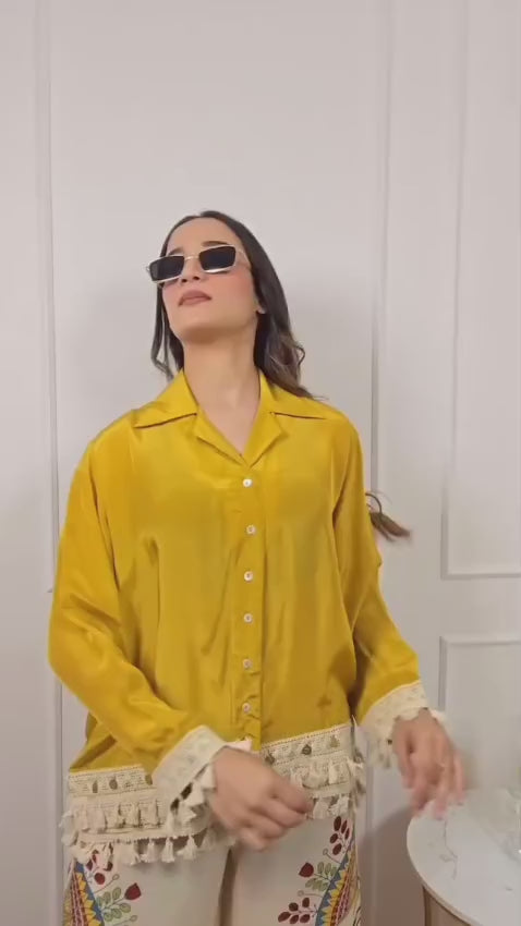 Work: Lace Work on Hemline, Digital Print Divider & Buttons